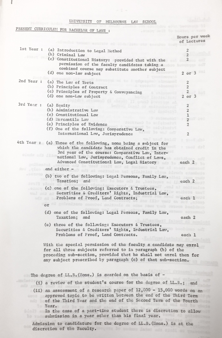 Curriculum for Bachelor of Laws, 1970.
