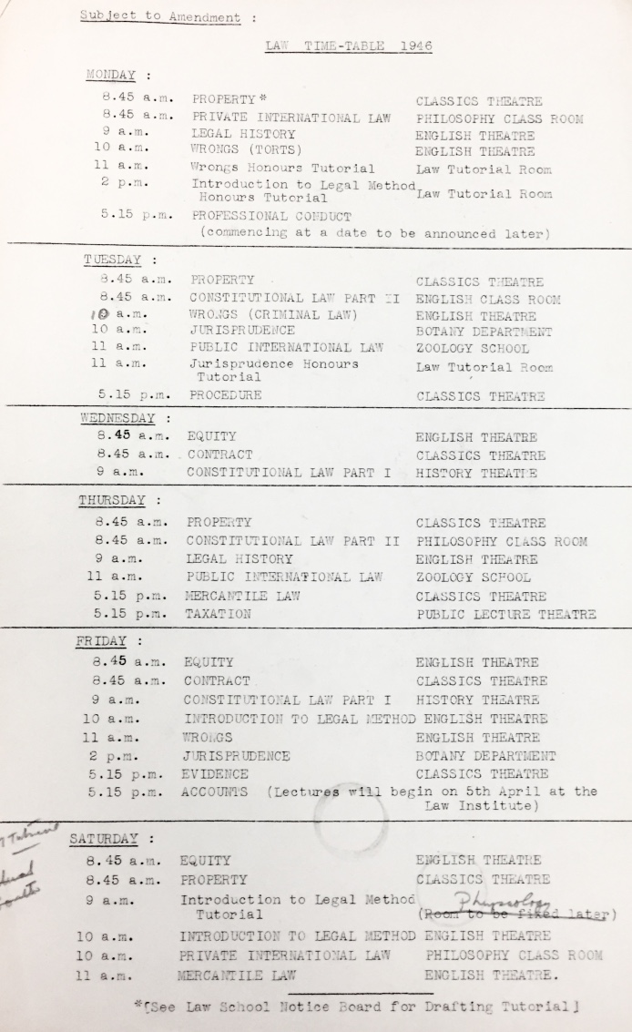 ‘Various forms of help were given to students returning after the War including refresher courses, and the desire of many ex-servicemen to begin Law, though having no Latin, helped extinguish that subject as a pre-requisite in 1947’ 8
